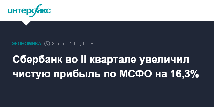Сбербанк во II квартале увеличил чистую прибыль по МСФО на 16,3%