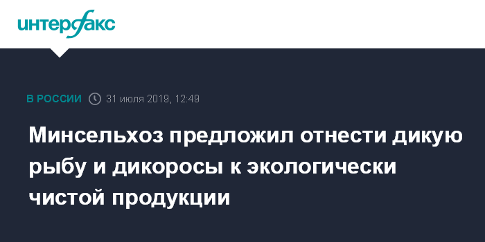 Москва. 31 июля. INTERFAX.RU - Минсельхоз РФ предлагает расширить перечень продукции, которая будет подпадать под закон "Об экологически чистой сельскохозяйственной продукции, сырье и продовольствии". Его проект в настоящее время обсуждается на сайте regulation.gov.ru.
