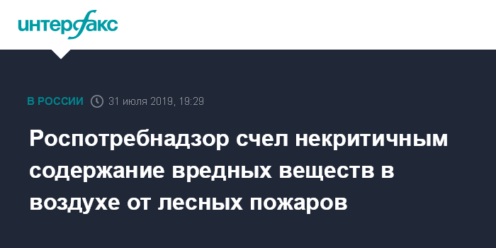 Москва. 31 июля. INTERFAX.RU - В населенных пунктах Сибири расположенных вблизи зоны природных пожаров, нет критического превышения вредных веществ в воздухе, заявила на совещании в Красноярске глава Роспотребнадзора Анна Попова.