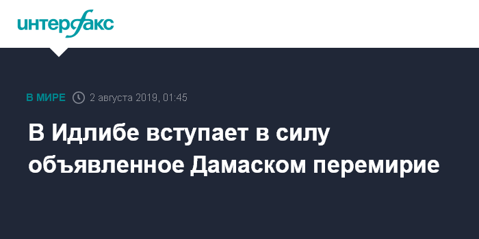 Москва. 2 августа. INTERFAX.RU - Объявленный сирийскими властями режим прекращения огня начинает действовать в Идлибской зоне деэскалации.