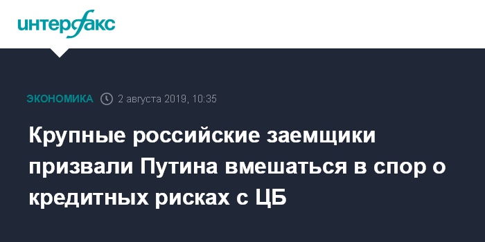 Крупные российские заемщики призвали Путина вмешаться в спор о кредитных рисках с ЦБ