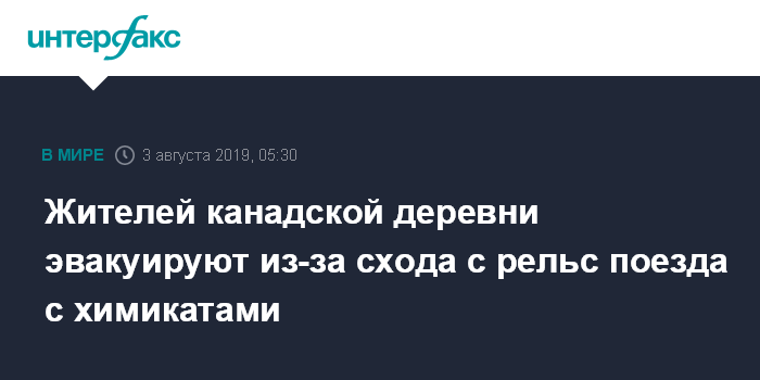 Москва. 3 августа. INTERFAX.RU - В деревне Ирвайн в канадской провинции Южная Альберта началась эвакуация жителей из-за схода с рельс поезда с химикатами, сообщает в субботу телеканал CBC News.