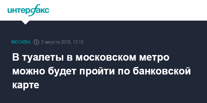 Москва. 3 августа. INTERFAX.RU - Пассажиры смогут проходить в модульные туалетные комплексы на станциях Московского метрополитена по бесконтактным банковским картам и гаджетам с аналогичными функциями, сообщили "Интерфаксу" в пресс-службе подземки в субботу.