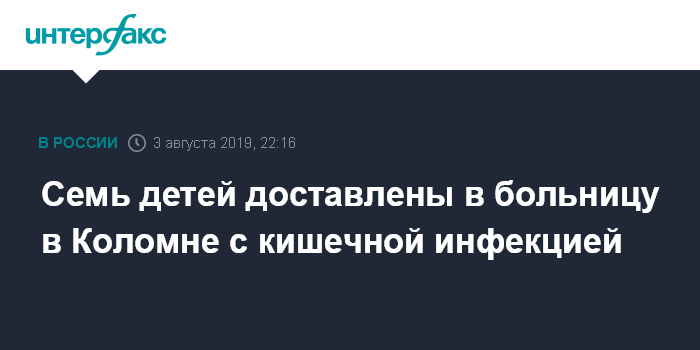 Москва. 3 августа. INTERFAX.RU - Семь детей доставлены в инфекционное отделение Коломенской больницы с кишечной инфекцией в субботу, сообщили "Интерфаксу" в пресс-службе Минздрава Московской области.