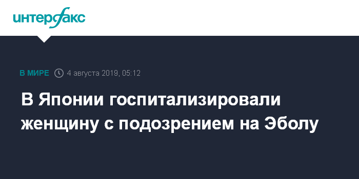 Москва. 4 августа. INTERFAX.RU - Пожилую женщину, посещавшая Демократическую республику Конго (ДРК), госпитализировали в Японии с подозрением на заражение вирусом Эбола, сообщило в субботу агентство Kyodo.