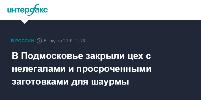 Москва. 5 августа. INTERFAX.RU - Полицейские задержали 19 мигрантов в подмосковном цехе по производству заготовок для шаурмы, некачественная продукция которого поставлялась в общепиты Московского региона, сообщила "Интерфаксу" представитель регионального главка МВД России Татьяна Петрова.