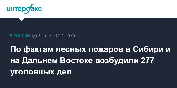 По фактам лесных пожаров в Сибири и на Дальнем Востоке возбудили 277 уголовных дел