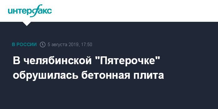 Москва. 5 августа. INTERFAX.RU - В магазине "Пятерочка" в Челябинске, обрушились бетонные перекрытия.