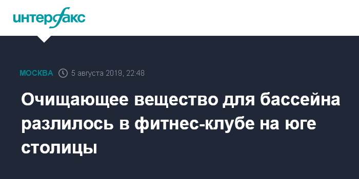 Москва. 5 августа. INTERFAX.RU - В фитнес-клубе на юге Москвы разлили очищающее вещество для бассейна, на месте работают медики, сообщили "Интерфаксу" в пресс-службе столичного главка МЧС РФ.