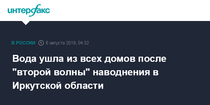 Москва. 6 августа. INTERFAX.RU - Вода продолжает оставаться на территории четырех населенных пунктов Иркутской области, которые были затоплены в конце июля во время второго за лето наводнения, сообщили во вторник агентству "Интерфакс" в пресс-службе Главного управления МЧС по региону.