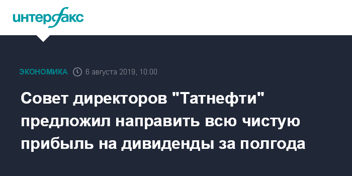 Совет директоров "Татнефти" предложил направить всю чистую прибыль на дивиденды за полгода