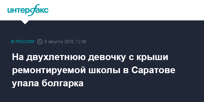 Москва. 6 августа. INTERFAX.RU - Следственные органы в Саратове возбудили уголовное дело из-за травм двухлетней девочки, на голову которой во время ремонта школы упала болгарка.