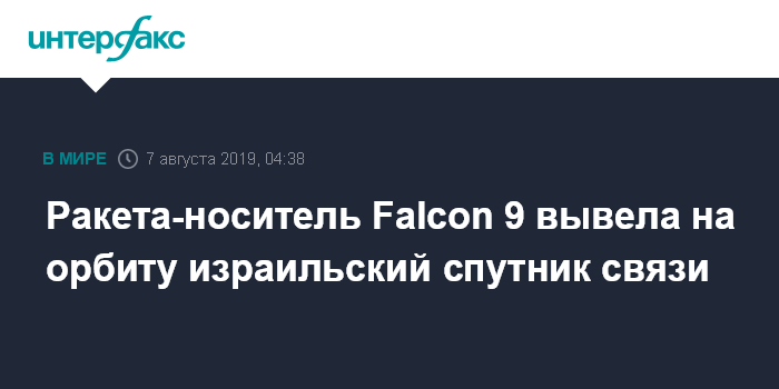 Ракета-носитель Falcon 9 вывела на орбиту израильский спутник связи