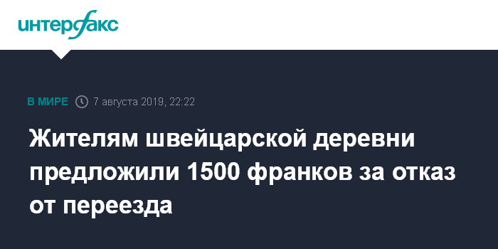 Жителям швейцарской деревни предложили 1500 франков за отказ от переезда