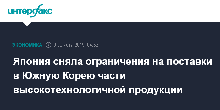 Япония сняла ограничения на поставки в Южную Корею части высокотехнологичной продукции