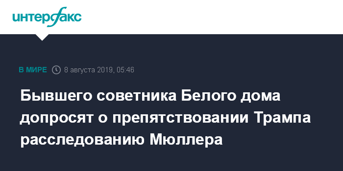 Бывшего советника Белого дома допросят о препятствовании Трампа расследованию Мюллера