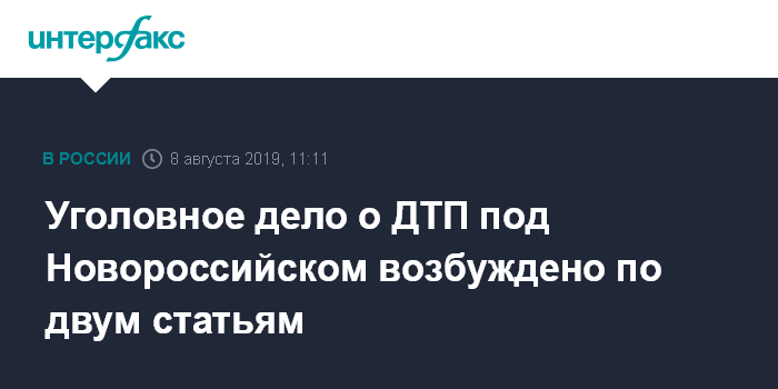 Москва. 8 августа. INTERFAX.RU - По факту ДТП с участием автобуса под Новороссийском возбуждено уголовное дело по двум статьям, сообщает пресс-служба прокуратуры Краснодарского края.
