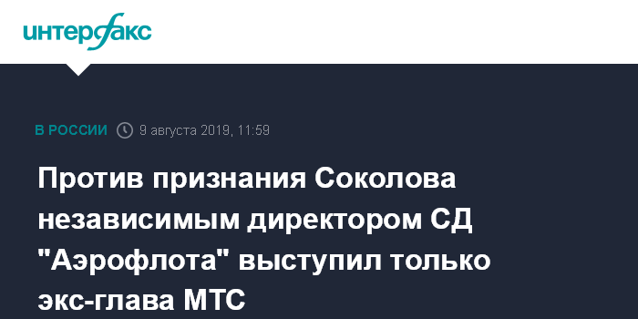Против признания Соколова независимым директором СД "Аэрофлота" выступил только экс-глава МТС