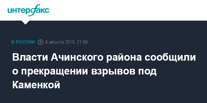 Власти Ачинского района сообщили о прекращении взрывов под Каменкой