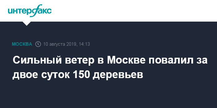 Москва. 10 августа. INTERFAX.RU - Сильные порывы ветра в пятницу и субботу повалили в Москве 150 деревьев, было повреждено 36 автомобилей, сообщил заместитель мэра столицы Петр Бирюков.
