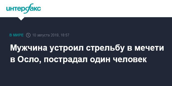 Москва. 10 августа. INTERFAX.RU - По меньшей мере один человек пострадал в результате стрельбы в мечети в Осло, сообщают в субботу западные СМИ.
