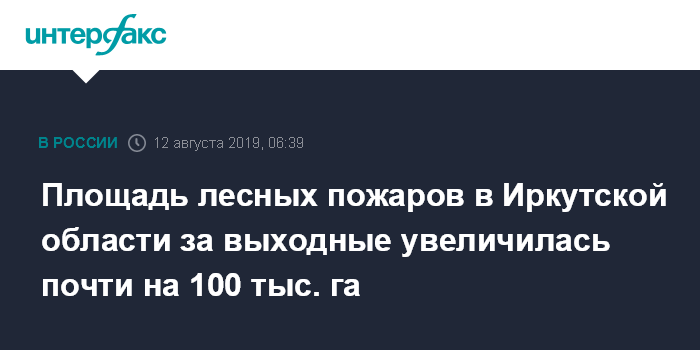 Москва. 12 августа. INTERFAX.RU - За минувшие сутки в Иркутской области было ликвидировано 12 лесных пожаров на площади 2 тыс. 445,3 га, продолжает действовать 140 очагов на 769 тыс. 868 га, сообщили в понедельник "Интерфаксу" в пресс-службе министерства лесного комплекса региона.