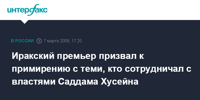 Москва. 7 марта. INTERFAX.RU - Граждане Ирака должны простить и примириться с теми, кто сотрудничал с режимом Саддама Хусейна.