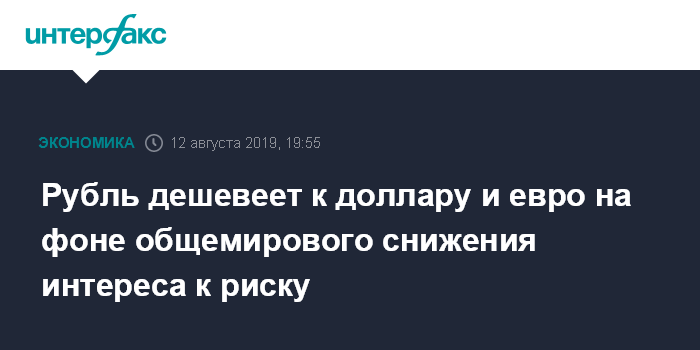 Рубль дешевеет к доллару и евро на фоне общемирового снижения интереса к риску