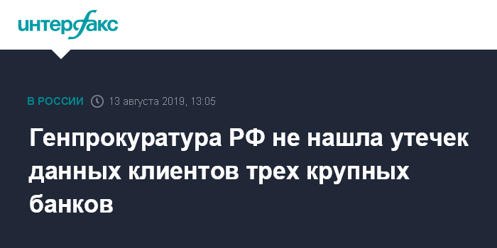 Генпрокуратура РФ не нашла утечек данных клиентов трех крупных банков