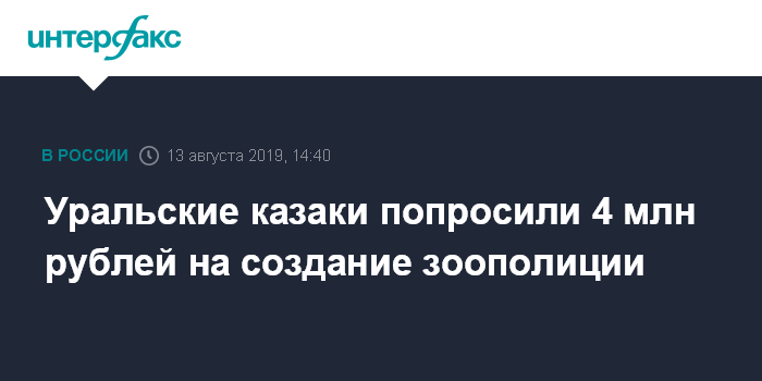Москва. 13 августа. INTERFAX.RU - Уральские казаки подали заявку на грант в 3,9 млн рублей на создание в Екатеринбурге зоополиции - автомобильного патруля, который займется защитой животных. Заявка направлена в Фонд президентских грантов, рассказал инициатор проекта атаман Геннадий Ковалев.