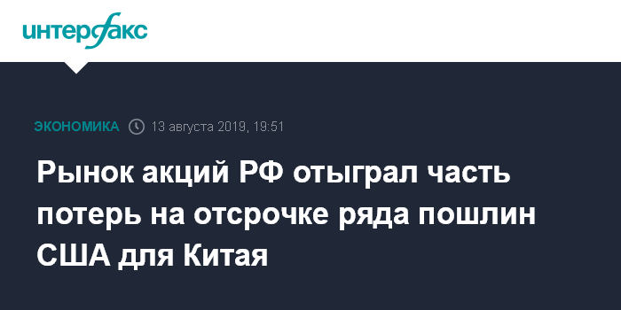 Рынок акций РФ отыграл часть потерь на отсрочке ряда пошлин США для Китая
