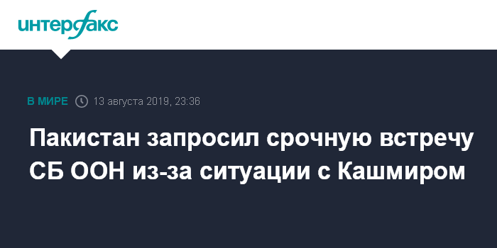Москва. 13 августа. INTERFAX.RU - Пакистан запросил проведение срочного заседания в Совете Безопасности ООН из-за решения Индии лишить штат Джамму и Кашмир специального статуса, сообщило агентство Associated Press.