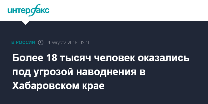 Москва. 14 августа. INTERFAX.RU - При худшем сценарии развития паводковой ситуации в Хабаровском крае в зоне подтопления в Хабаровском крае могут оказаться 115 населенных пунктов, сообщил губернатор региона Сергей Фургал.