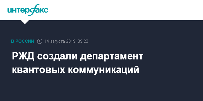 "Департамент будет взаимодействовать с научным сообществом и технологическими компаниями в части внедрения квантовых технологий передачи и защиты данных, способствующих повышению эффективности бизнес-процессов ОАО "РЖД", повышению эффективности использования инфраструктуры и безопасности функционирования железнодорожного транспорта", - отметили в компании.