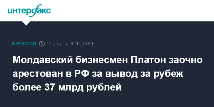 Москва. 14 августа. INTERFAX.RU - Тверской суд Москвы в среду санкционировал заочный арест молдавского предпринимателя Вячеслава Платона, обвиняемого в по делу бывшего лидера Демократической партии Молдавии Владимира Плахотнюка о выводе из РФ более 37 млрд рублей.