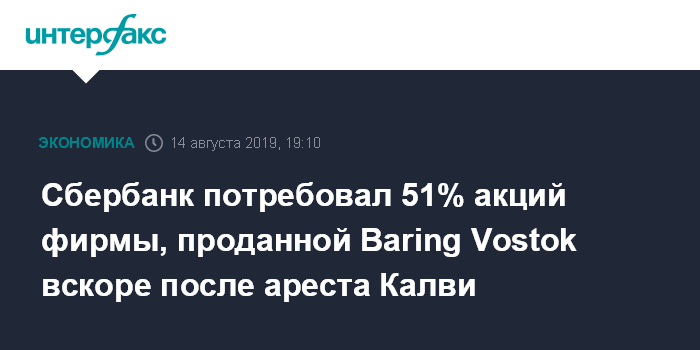 Сбербанк потребовал 51% акций фирмы, проданной Baring Vostok вскоре после ареста Калви