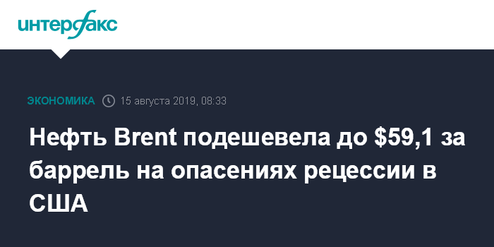 Нефть Brent подешевела до $59,1 за баррель на опасениях рецессии в США