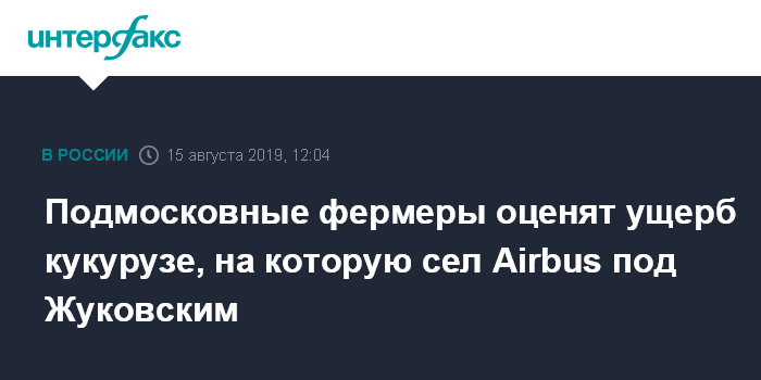 Подмосковные фермеры оценят ущерб кукурузе, на которую сел Airbus под Жуковским
