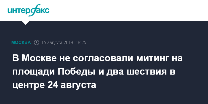 В Москве не согласовали митинг на площади Победы и два шествия в центре 24 августа