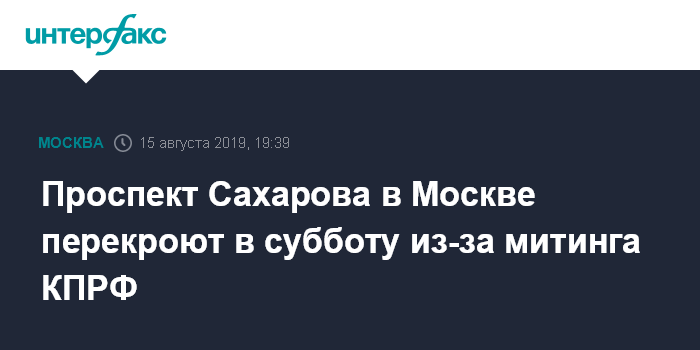 Столичными властями был согласован митинг "За честные и чистые выборы" с предполагаемым количеством участников до 5 тыс. человек, организованный московским отделением КПРФ. Акция пройдет 17 августа с 12:00 до 15:00 на внешней стороне проспекта Академика Сахарова.