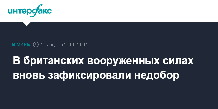 Москва. 16 августа. INTERFAX.RU - Состав вооруженных сил Великобритании продолжает уменьшаться девятый год подряд, сообщает "Би-би-си".