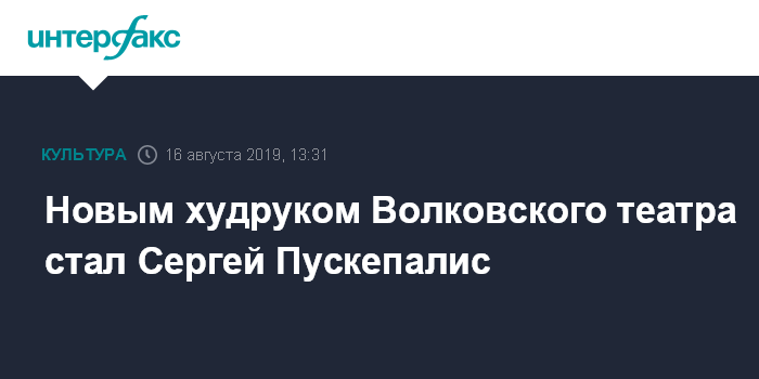 Москва. 16 августа. INTERFAX.RU - Новым художественным руководителем Ярославского театра драмы имени Волкова назначен актер и режиссер, заместитель художественного руководителя МХАТ имени Горького по творческой работе Сергей Пускепалис.