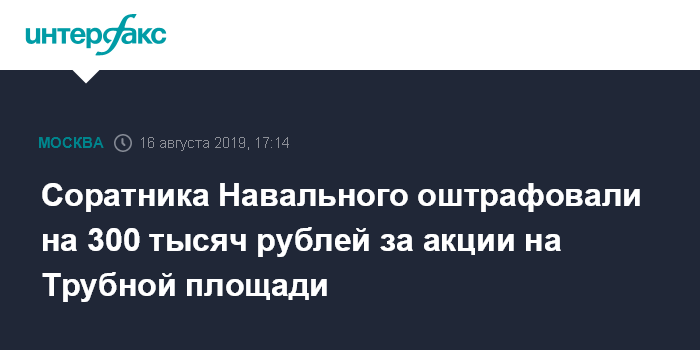 Соратника Навального оштрафовали на 300 тысяч рублей за акции на Трубной площади