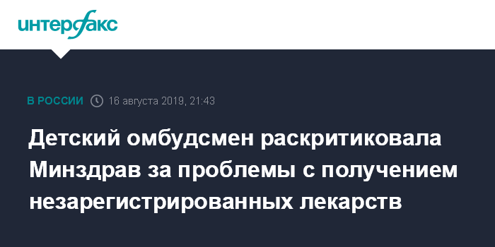 Москва. 16 августа. INTERFAX.RU - Уполномоченный по правам ребенка при президенте Анна Кузнецова усомнилась в эффективности механизма Минздрава России по оформлению разрешений на покупку нуждающимися незарегистрированных в России лекарств. Об этом сообщила ее пресс-служба.