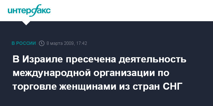 Москва. 8 марта. INTERFAX.RU - Положен конец преступной деятельности международной сети по торговле женщинами из стран СНГ, заявил в воскресенье в эфире радиостанции "Эхо Москвы" пресс-секретарь израильской полиции Алекс Кагальский.