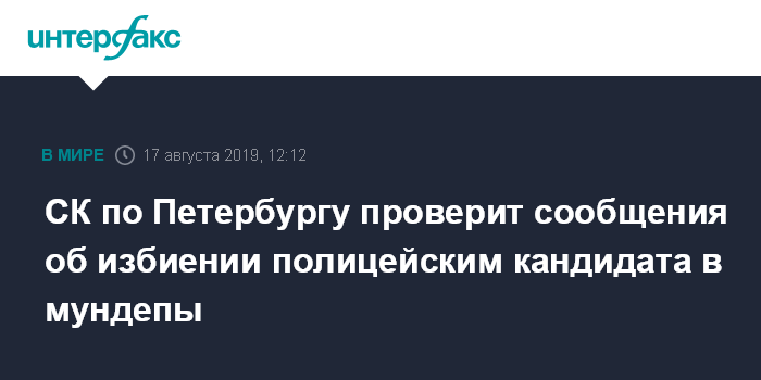 СК по Петербургу проверит сообщения об избиении полицейским кандидата в мундепы