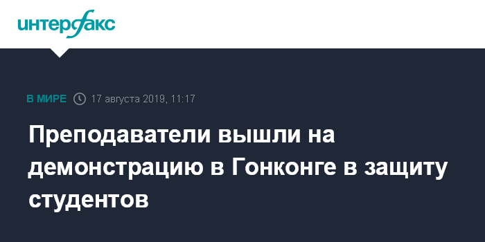 Москва. 17 августа. INTERFAX.RU - В Гонконге в субботу проходит демонстрация свыше тысячи учителей, преподавателей и научных сотрудников, передает агентство Associated Press.