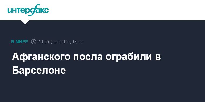 Москва. 19 августа. INTERFAX.RU - Группа молодых людей ограбила посла Афганистана в Испании, сообщает агентство EFE со ссылкой на источники в полиции.