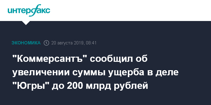 "Коммерсантъ" сообщил об увеличении суммы ущерба в деле "Югры" до 200 млрд рублей