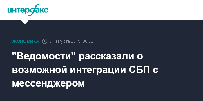 Москва. 21 августа. INTERFAX.RU - Центробанк может интегрировать Систему быстрых платежей (СБП) с корпоративным мессенджером "Серафим", сообщили в среду "Ведомости" со ссылкой на источники.